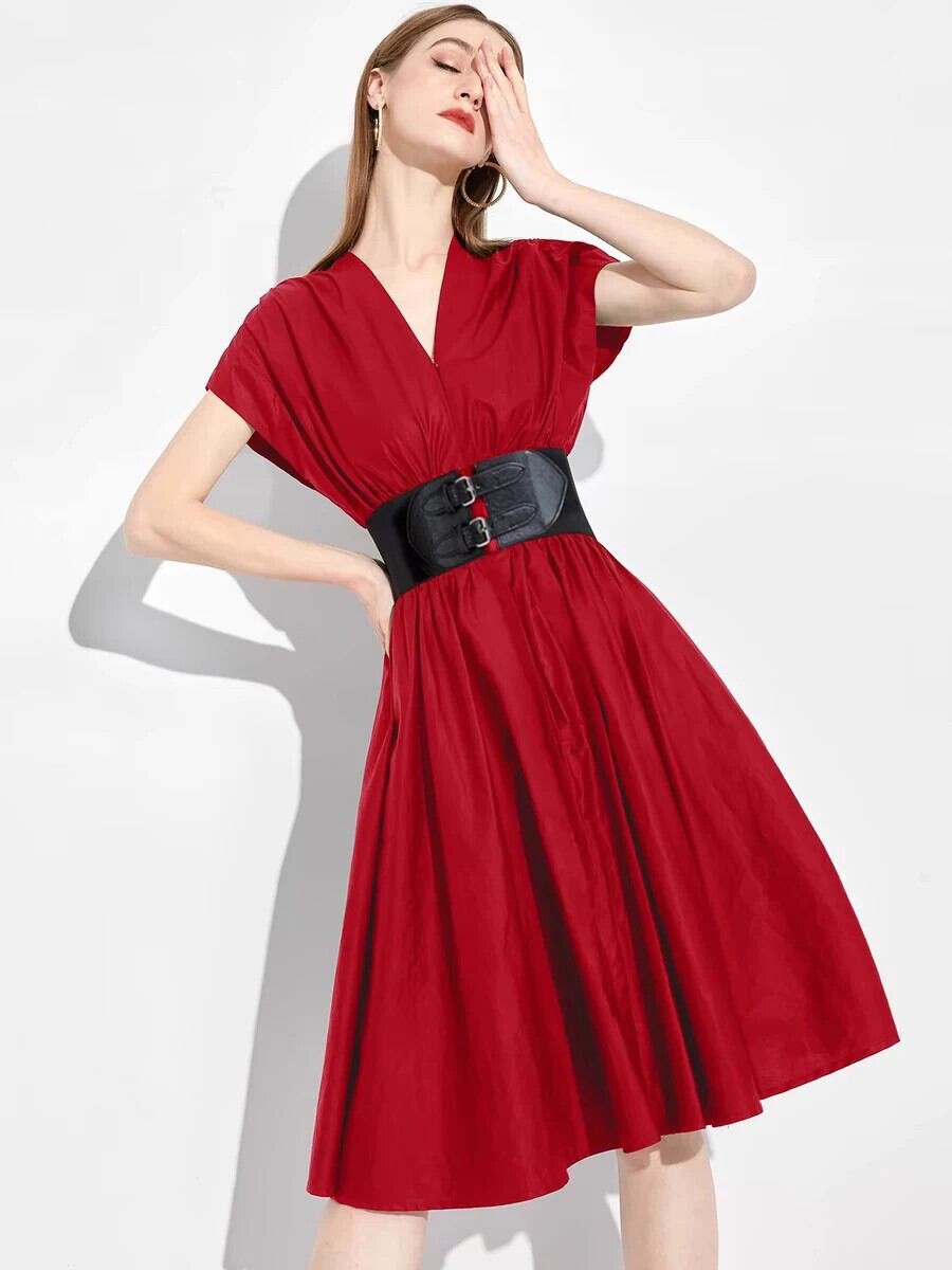 Pinkoz エレガント黒ラグランスリーブサマーパーティーナイトミディドレスベルト付きオフィスレディ Vestidos フレンチゴシック ピンク ブラック 夏物 ハーネス 会社 学校 通勤や通学にも