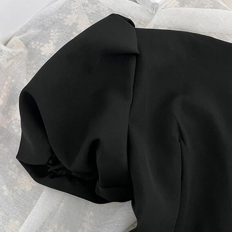 Pinkoz 滑走路デザイナーセレブスタイリッシュ黒ミニドレスアウトクリスタルリボンパフスリーブエレガントシックパーティードレスvestidos ピンク ブラック