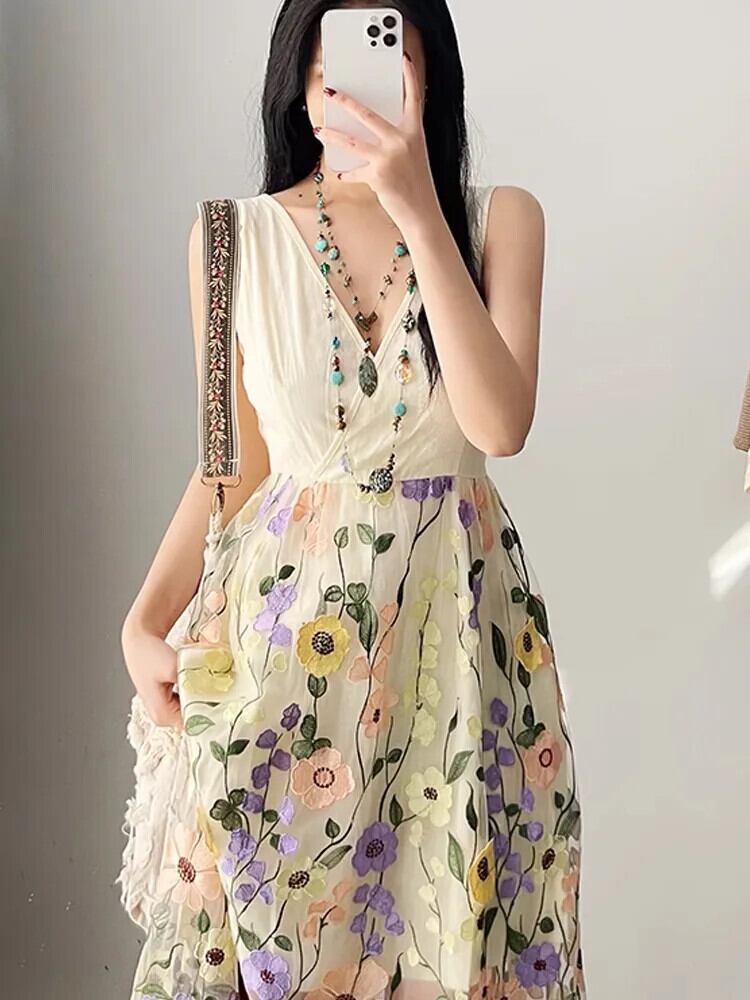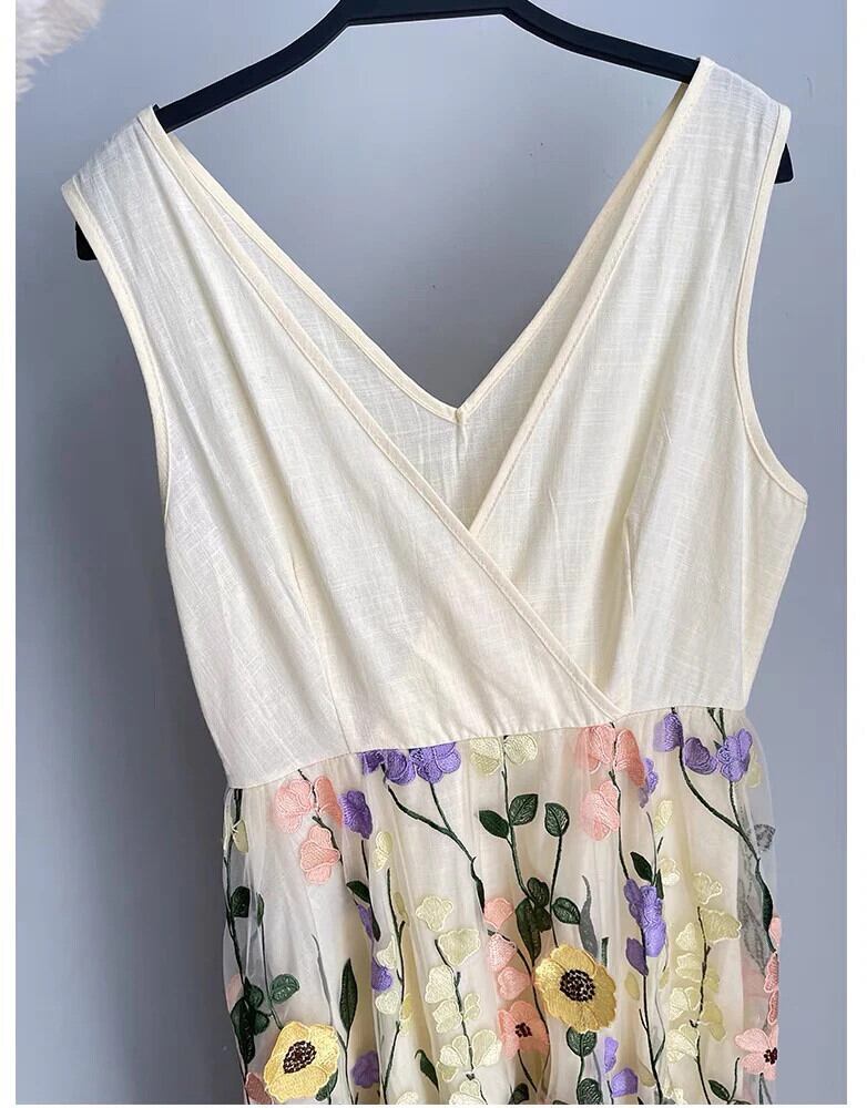 Pinkoz 滑走路デザイナー v ネックスリーブベージュ 3D フラワーアップリケ高級マキシドレスパーティーナイトフェスティバルドレスvestidos ローブ ピンク Vネック フラワーデザイン