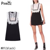 Pinkoz デザイナー黒と白パッチワーク レース ドレス ノースリーブ ミニ鉛筆セレブ スタイリッシュ ディナー エレガント ローブ ピンク ホワイト ブラック