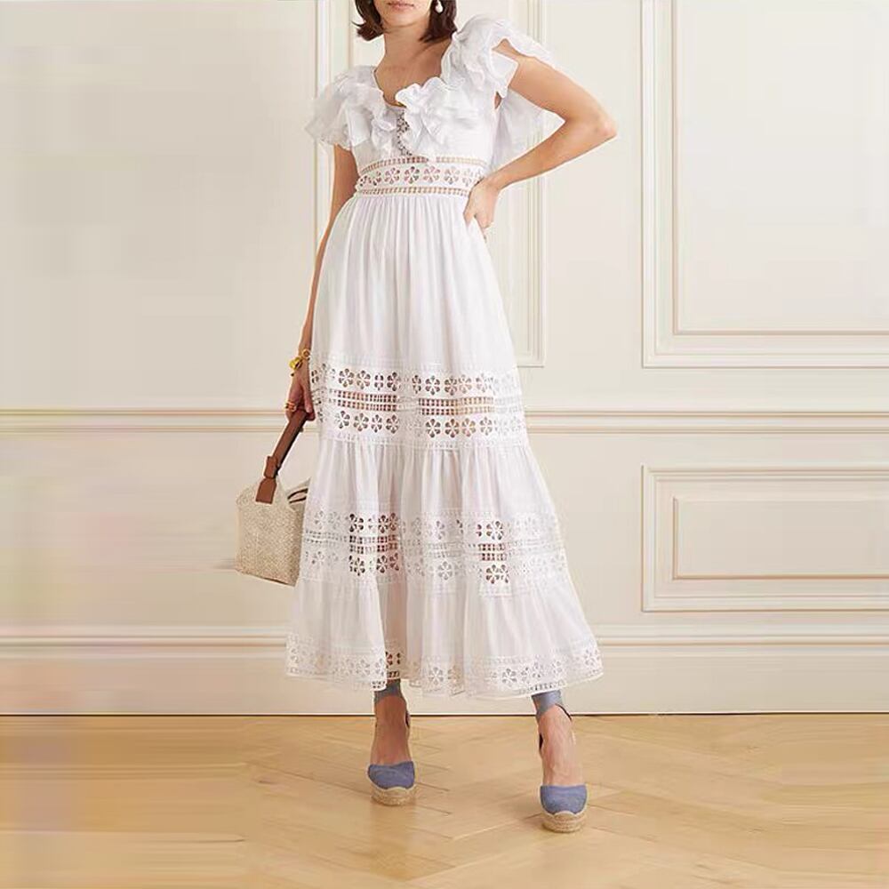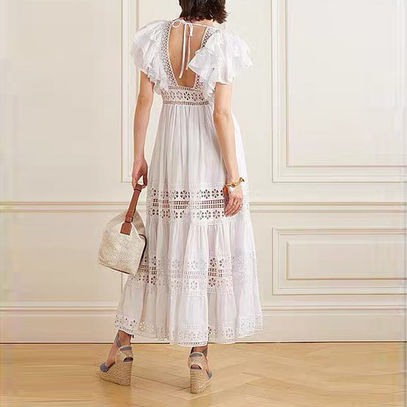 Pinkoz キャットウォーク Witte Kanten Jurk Met Rugleuningen パッチワーク Uitgehold Zomerfeest Nacht Maxi Jurken Vestidos ピンク
