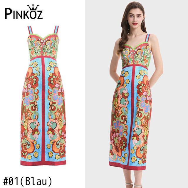 Pinkoz Kleid Spaghetti Barock Muster Urlaub schicke Spaghetti träger Bleistift Kleider für Frauen lässig Robe de neu ピンク