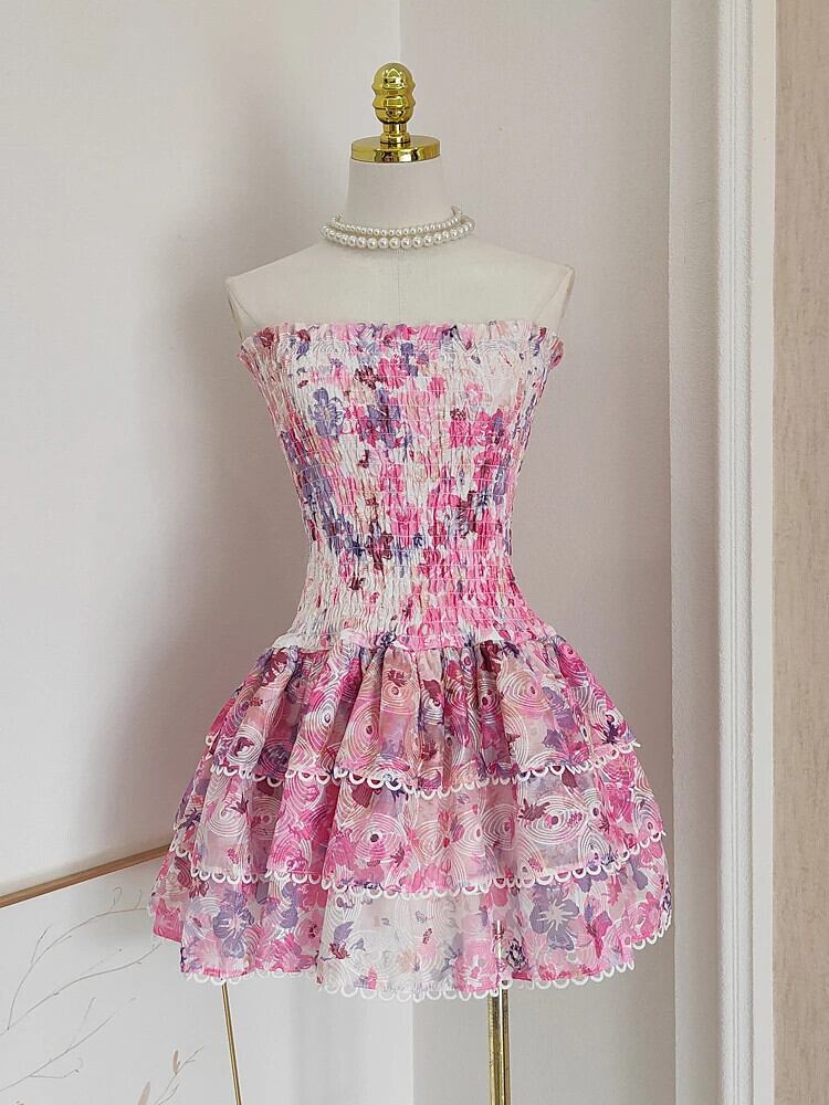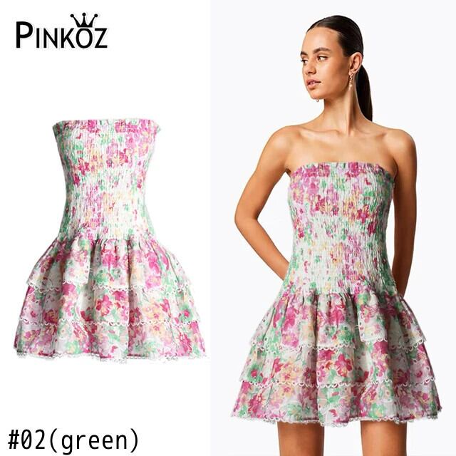Pinkoz Frauen Sommerkleid elastische Mini Rüschen aushöhlen Stickerei träger loss schleimige Party Urlaub Abendessen grün rosa Vestidos ミニ ピンク