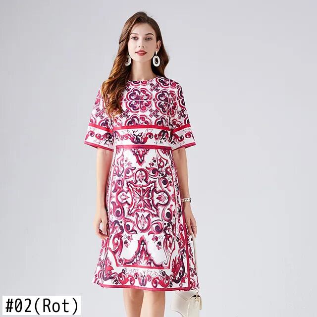 Pinkoz Frauen lässig エレガント O-Ausschnitt knielangen Kleid für Arbeit Büro Dame gelb blau Muster gedruckt Sommer Vestidos ピンク