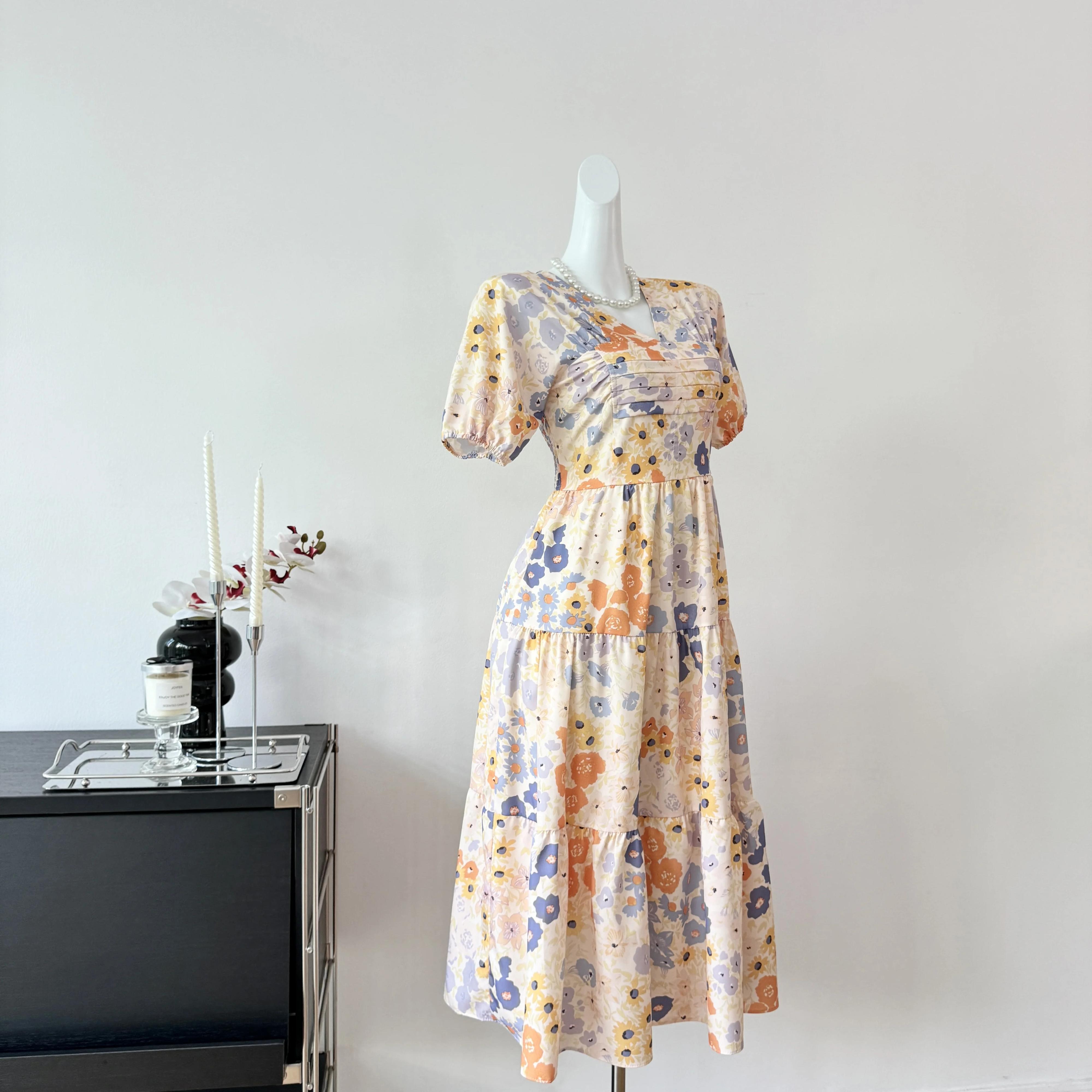 Pinkoz Frauen Blumen kleid für Frauen V-Ausschnitt Puffärmel Urlaub Chic Sommer Boho A-Linie Vestidos Robe de ピンク