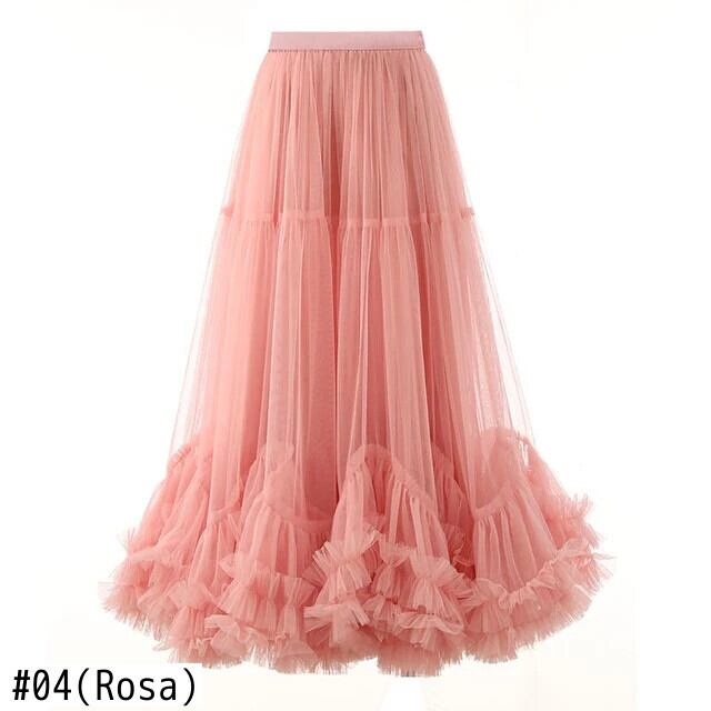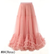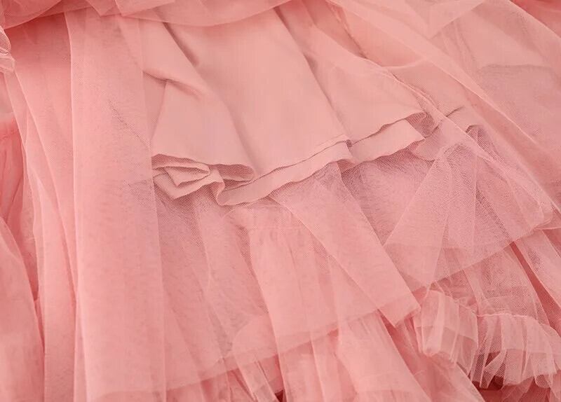 Pinkoz dunkelgrüne Frauen Maxi röcke elastische Meash geraffte Rüschen Patchwork Promi Faldas Kleidung ピンク