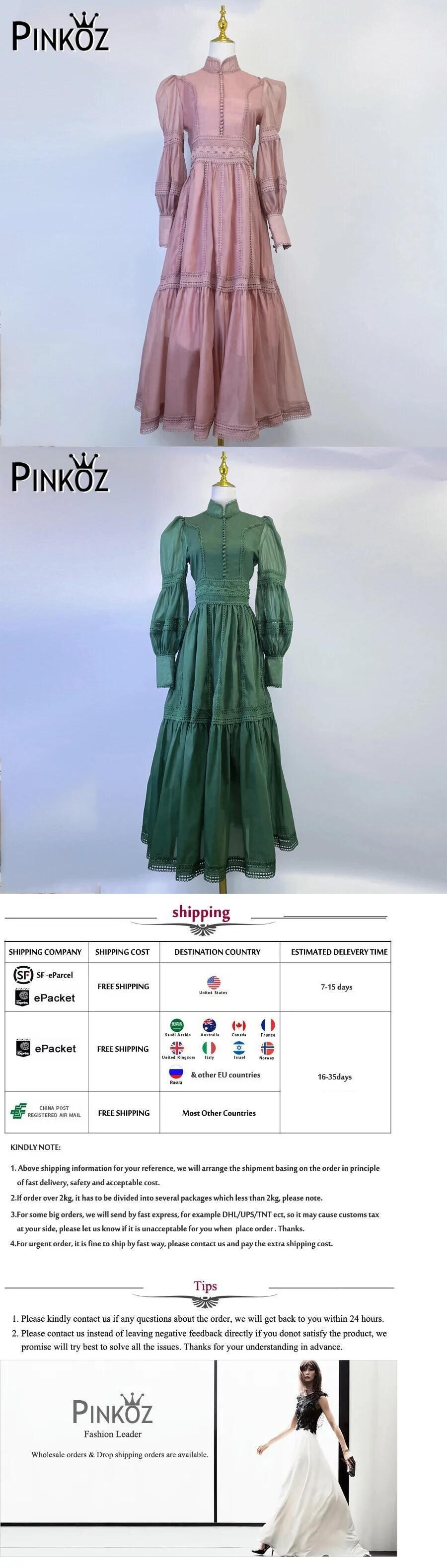 Pinkoz Frauen Maxi langes Kleid stehen Kragen パッチワーク Spitze A-Linie Party Nacht kleider Vestidos Street Robe ピンク ストリート