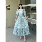 ピンコズ フラウエン パッチワーク スピッツェ ブルーメン ミディ クライド クノプフェ A-Linie elastische Taille Sommer Paff Ärmel Kleider neu ピンク